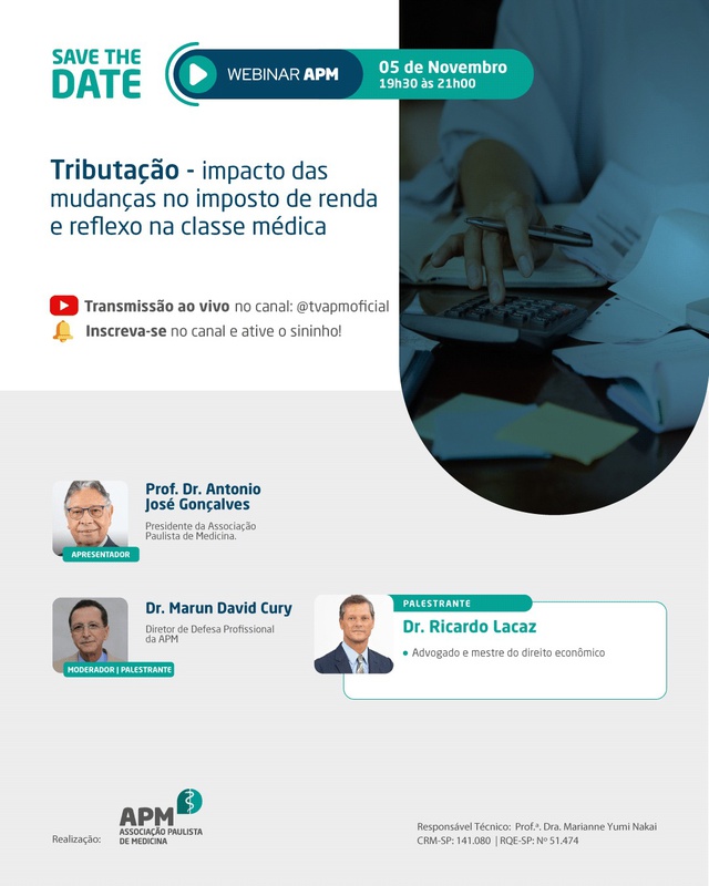 Webinar APM – Tributação - Dia 5 de novembro - das 19h30 às 21h